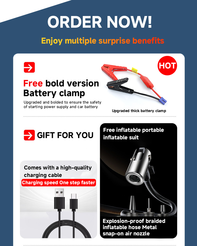 Starter*1, Smart Battery Clamps*1,Air Hose*1,Needle Valve Adapter*1,