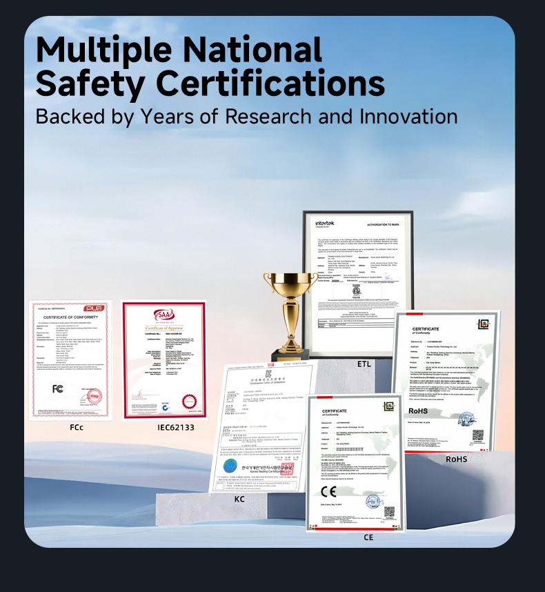 | BSCI / ISO 9001 / CE / ROHS / KC / FCC / IEC62133 TUV certified supplier. | |